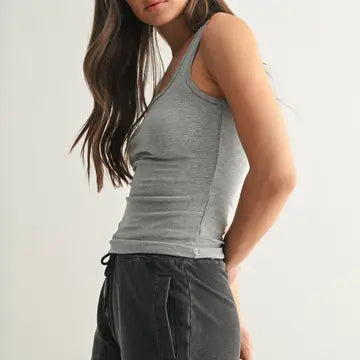 Mono B Ribbed Tank Top-Grey